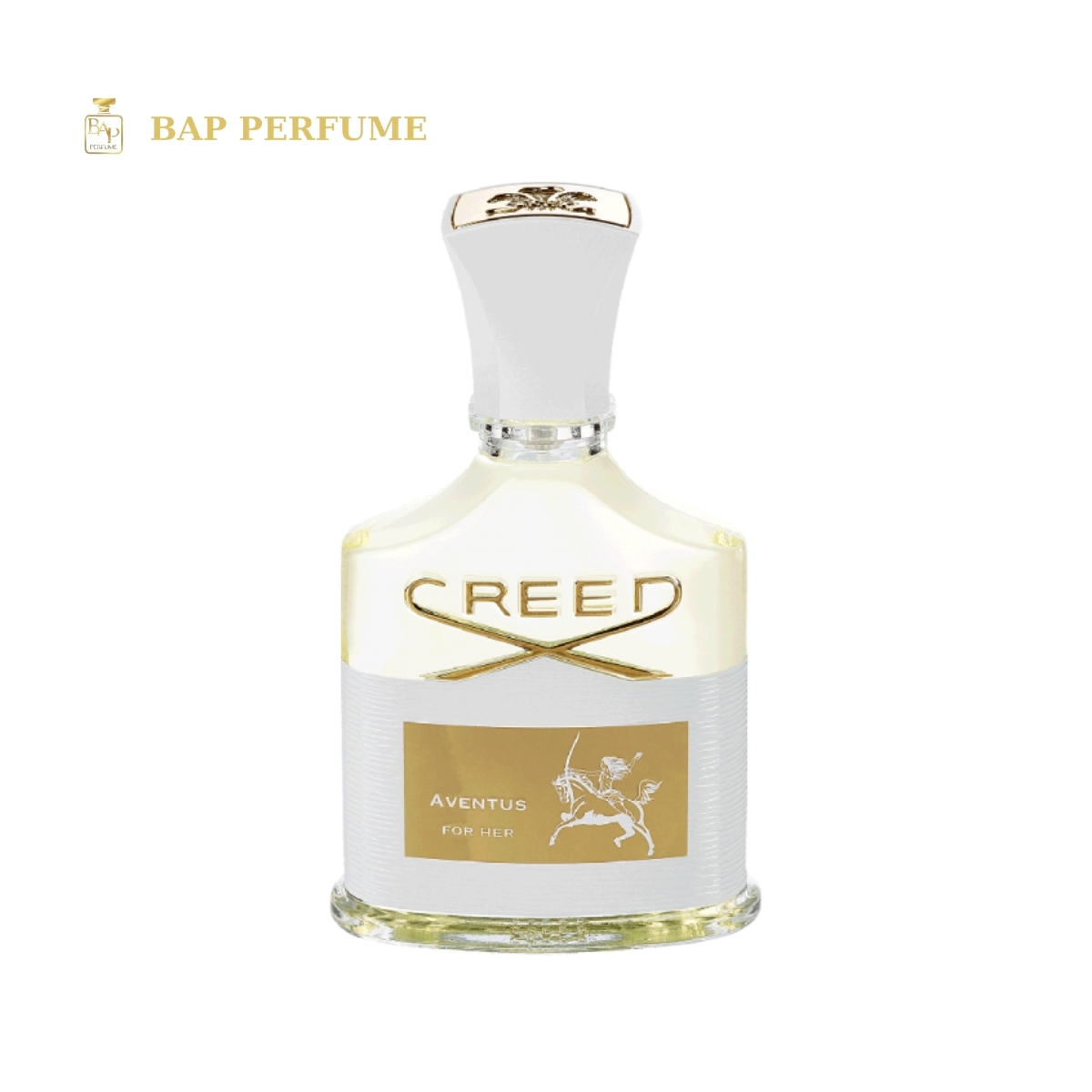 Chai Aventus For Her giữ nguyên dáng cổ điển đặc trưng của nhà Creed, với thân thủy tinh trong suốt viền bạc và nắp trắng tinh tế. Họa tiết kỵ sĩ cưỡi ngựa được làm mềm hơn so với bản nam, thể hiện tinh thần phiêu lưu và khí chất quý phái của người phụ nữ hiện đại. Một bản giao hưởng sống động giữa táo xanh – hoa hồng – gỗ đàn hương. Tươi mát, thanh lịch nhưng vẫn đầy chiều sâu